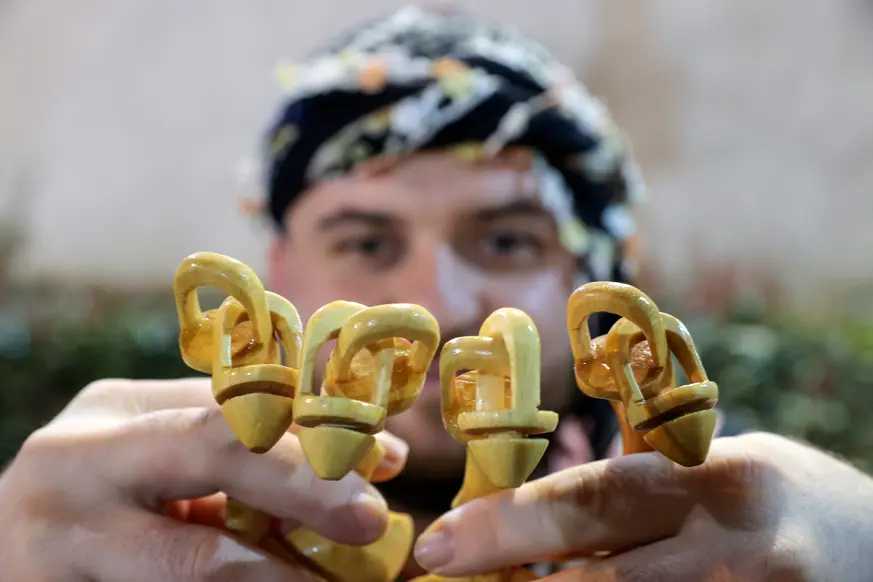 Ardından zımparalama, eğeleme işlemlerinden geçirdiği kaşıkların saplarını oyarak, tongurdak kısmını elde eden Uğur, son olarak desen çizip verniklediği kaşıkları kurumaya bırakıyor.